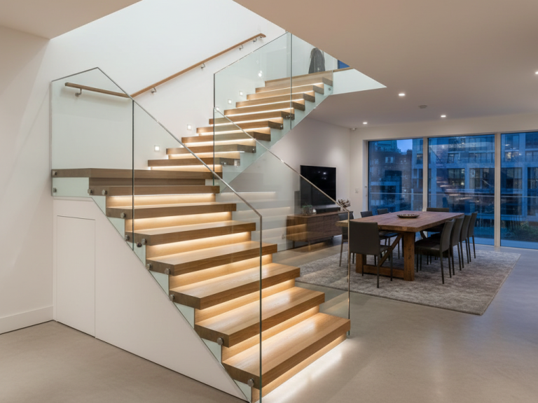 - Vielfalt im Design: Ob als rustikale Massivholztreppe im Landhausstil oder als filigrane Stufen in Kombination mit Glas oder Stahl für den modernen Look – Holz bietet unbegrenzte Gestaltungsmöglichkeiten für jeden Treppentyp.