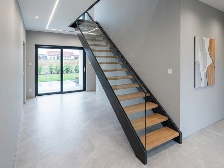 - Einfache Pflege und Wandschutz: Da die Stufen seitlich in den Wangen liegen, sind die angrenzenden Wände beim Reinigen der Treppe besser vor Verschmutzungen geschützt.